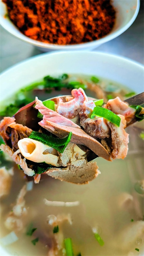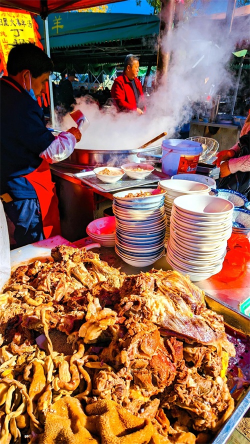 最后喝了一碗热气腾腾的全羊汤,肉美量足,正宗的羊肉味,还可以免费续汤。羊汤应该是泊里大集的招牌,临近中午,很快就满座了。和卖羊汤的老板聊了几句,她们平时有自己的店,逢大集时就过来卖,生意不错。