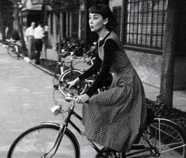 生活中的赫本十分的惬意,她骑着自行车吹着口哨,非常的开心,她皮肤白皙,五官精致,真是风华绝代啊!(珍贵老照片:年轻时的林青霞貌美如花,年轻时的赫本风华绝代)