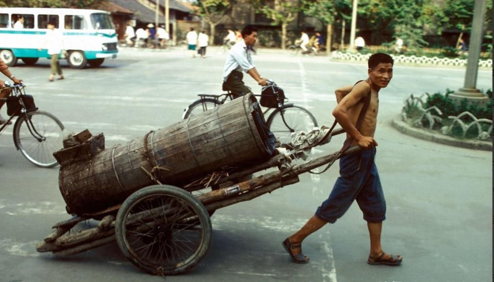14、男子拉着粪水车!