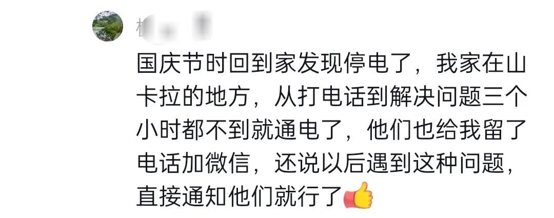 就算是山卡拉的地方停电,打了95598,都能用最快的速度把电给咱解决了,服务态度没得说。