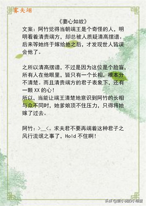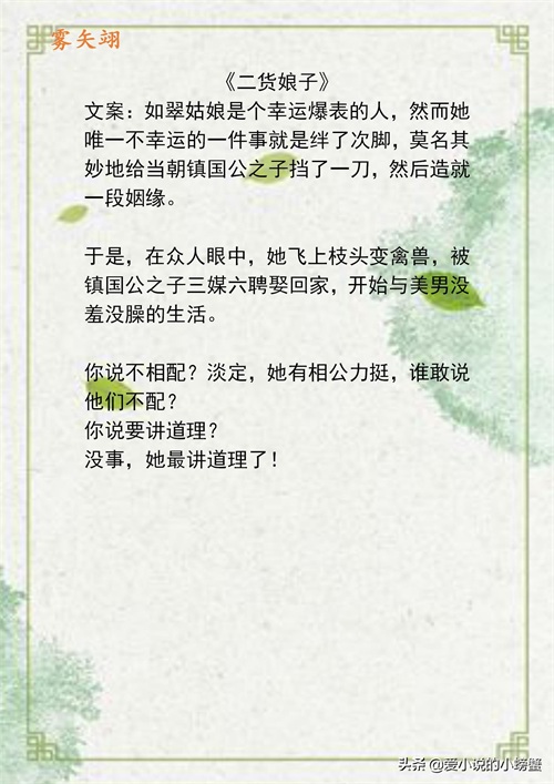 今天给大家推荐的大大是雾矢翊,这个大大的文类型还是挺多的,也是高产量的大大,今天只推荐的古言。我记得当时刚看小说时,就是喜欢不太动脑子,女主娇娇弱弱,男主宠妻这种类型的,常看的就是田园泡,雾矢翊,笑佳人……这些大大这种甜文,也算是一种回忆呀,虽然剧情是这种小白的,但是文笔还是可以的,书荒的时候就可以看。