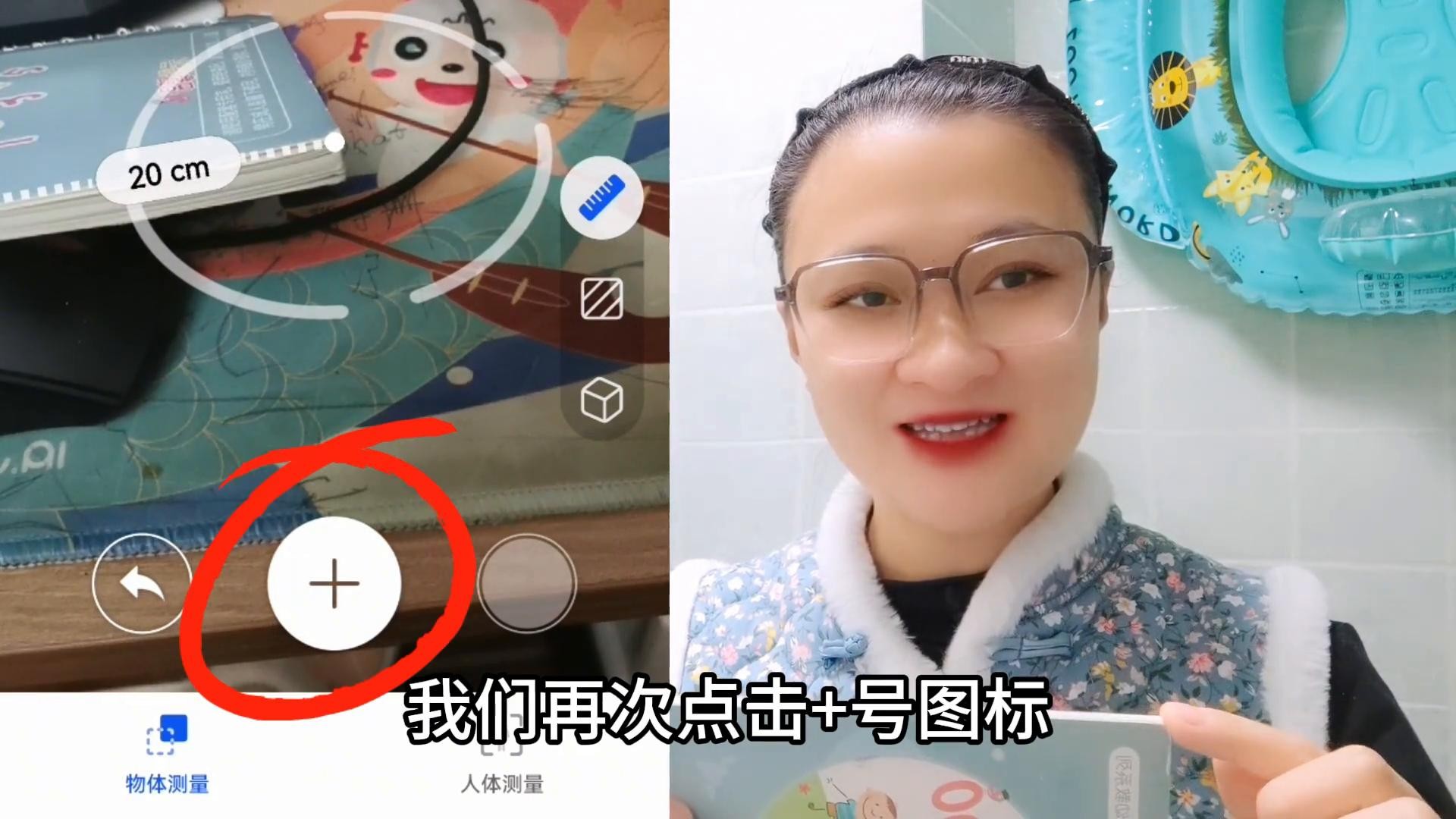 ·这时就把这个圆点对准要测量物体的一端,然后点击底部的+号图标,这个点作为测量的起点。