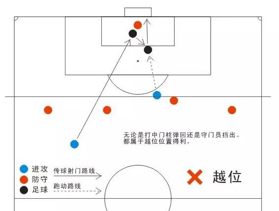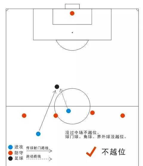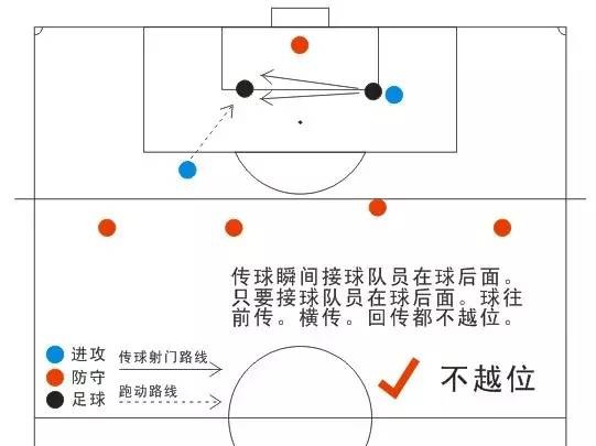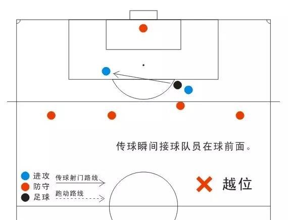 3、越位球员必须在传球球员的前面,且球是向前传的。