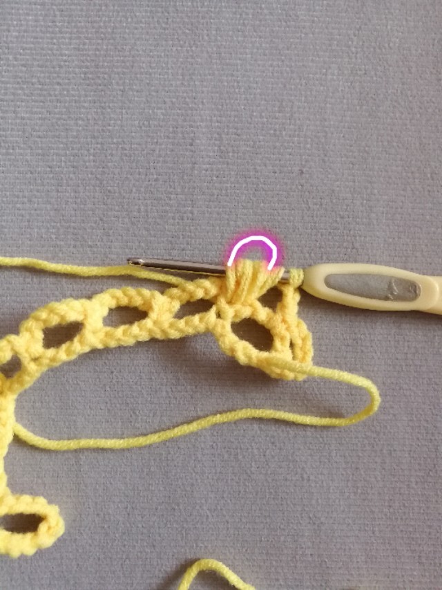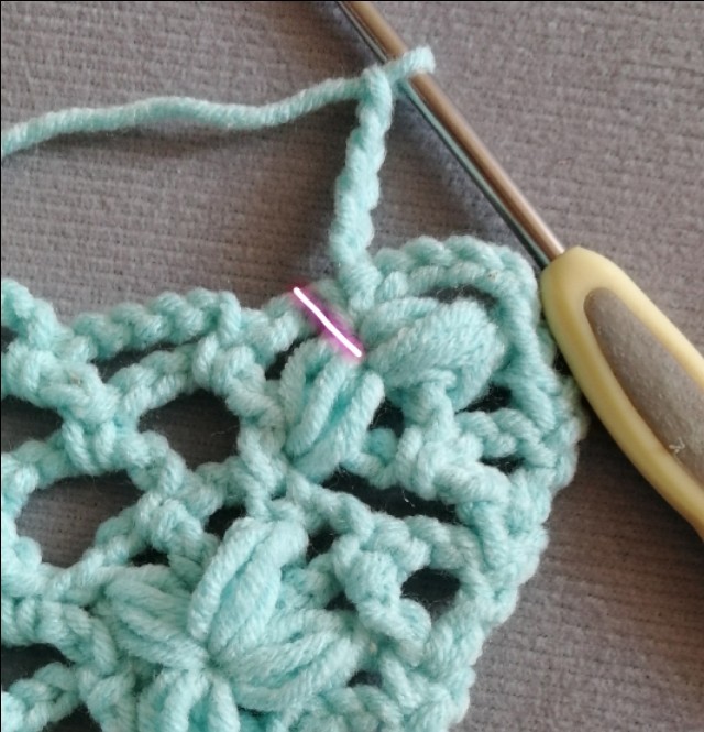 后面每一行花样钩针位置是花样的中间,不是旁边的辫子孔。