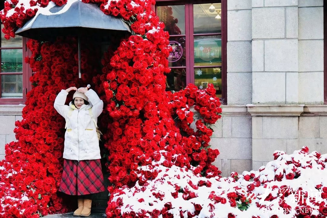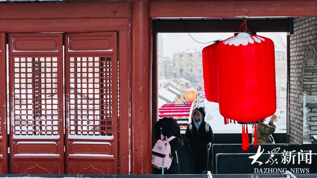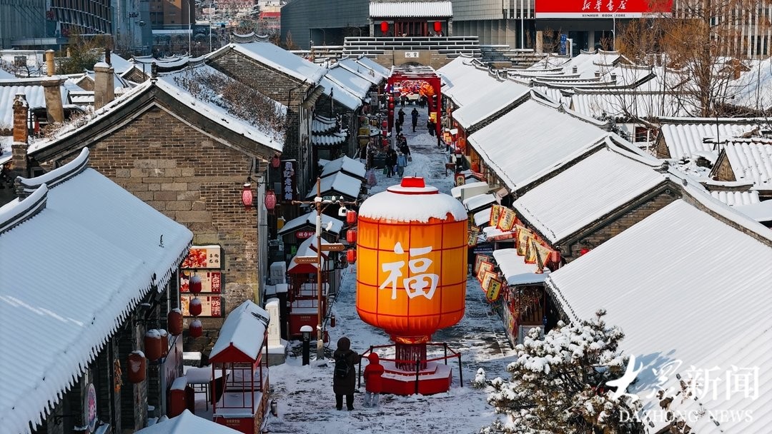 1月27日,农历腊月二十八,烟台市芝罘区向阳街道所城里、朝阳街等特色街区,诗情画意般的雪景,吸引游客打卡游玩,感受海滨冬日浪漫。