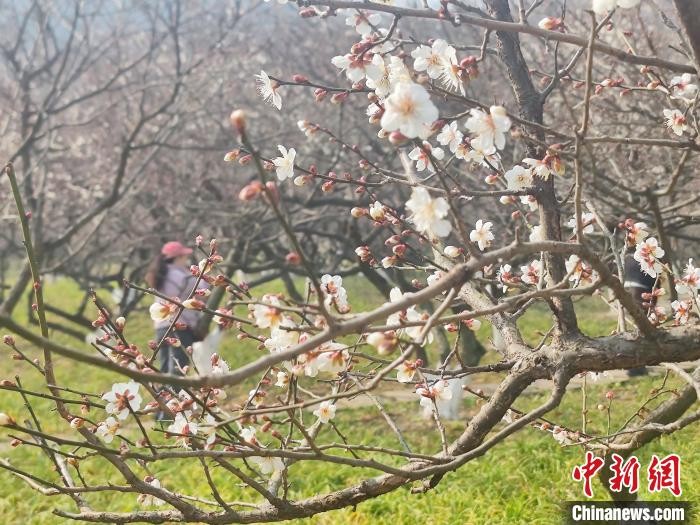 近日,位于杭州市临平区的超山风景名胜区梅花渐次开放,迎来较佳观赏期。据悉,作为江南三大赏梅胜地之一,超山历来享有“十里梅花香雪海”“中国观梅第一山”等美誉。图为超山风景名胜区内盛开的梅花。临平区融媒体中心 供图