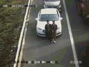 让民警哭笑不得的是,2名女子手挽手,有说有笑并排走在白色轿车车头前,与汽车保持同步前行,恰好将车辆前车牌挡住。而在这辆白色轿车后边,另外一辆轿车也几乎零距离紧紧跟随。这一幕在电子眼下滑稽上演,让见多识广的民警都顿感无语。