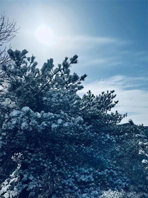 雪后的梯子山却是异常迷人,面对这样银装素裹的高山,心里不由升起几分愉悦。站在山顶,感受风带来的快意,完全有种一览众山小的磅礴气势。大雪纷纷扬扬落下,那一片雪花在空中舞动着各种姿势,或飞翔,或盘旋,或直直地快速坠落,铺落在地上。在这一刻,一切都是美好的,一都是寂静的。松树的清香,白雪的冰香,给人一种凉莹莹的抚慰。