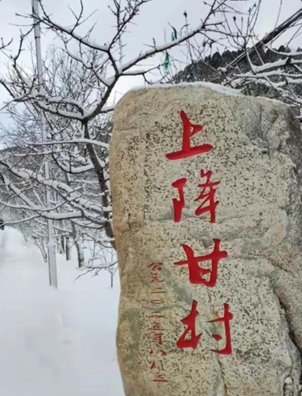 上降甘村紧邻泰安,只有一山之隔,交通却很方便,公交车直达村中心,且有多班次,对于村民出行很是便利。雪后的村民很是勤奋,集体出动,清扫道路,路上从不耽误行人以及车辆通行,村民一心,齐力断金,为建设美丽家乡,人人有份。