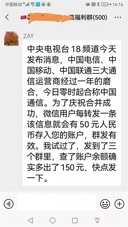 再加上还说转发微信群能得50元钱?这纯属天上不是掉馅饼,而是设陷阱。他是以此为诱饵让别人替他扩散谣言。