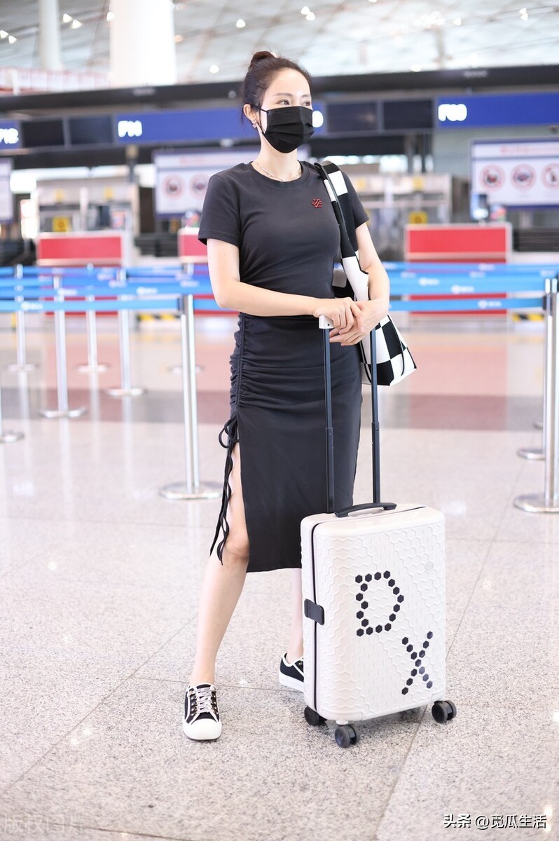 董璇丸子头,身穿黑色紧身裙现身北京机场!长腿吸睛