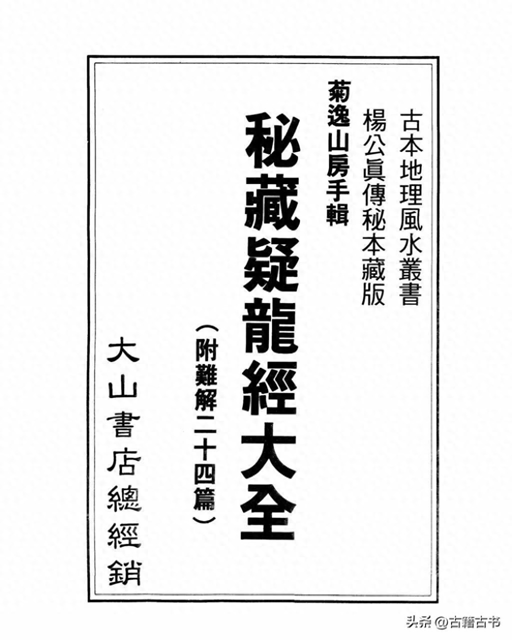 附难解二十四篇,菊逸山房手辑 ,杨公真传秘本藏版,此书为唐朝著名地理风水学家杨筠松撰写。全书分三篇,介绍如何根据山水地势寻找龙脉,上篇论干中寻枝,以关局水口为主,中篇论寻龙到头,看面背朝迎之法,下篇论结穴形势