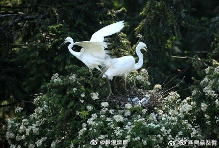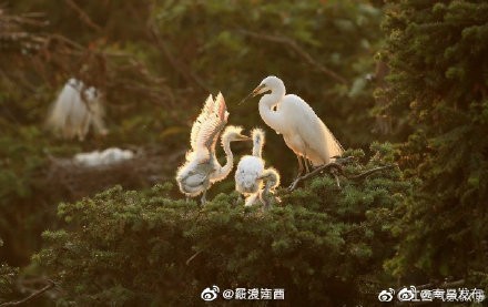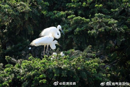 【南昌象山森林公园鹭鸟成群 场面十分壮观】发现南昌遇见南昌 位于鄱阳湖之滨、南昌新建区象山镇境内的象山森林公园,栖息的候鸟超过40万只,有15个种类,其中白鹭8种,占世界白鹭种类的一半以上。每年3-9月是公园鹭鸟最多的时候,鹭鸟飞时铺天盖地、白浪翻滚,静时满树遍是,场面十分壮观,公园因此被称为"鹭鸟王国"。@江西气象微博