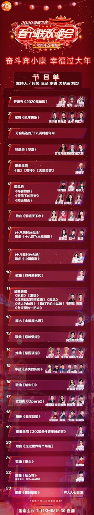 准备好了吗?湖南卫视小年夜春晚节目单来了!来看看你的爱豆什么时候出场