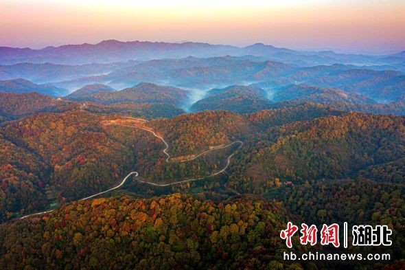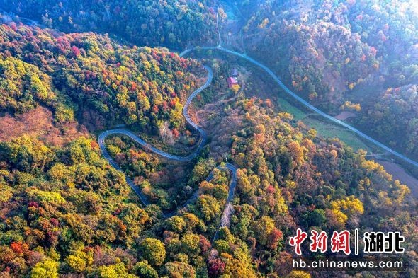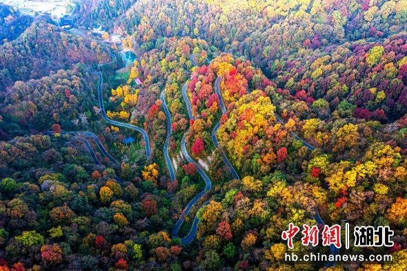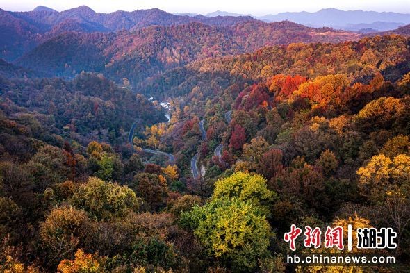 近日,湖北安陆钱冲古银杏国家森林公园,重峦叠嶂,盘山公路蜿蜒曲折,红橙黄绿青蓝紫妆点银杏谷风景如画,吸引了全国各地的游客来此赏景。
