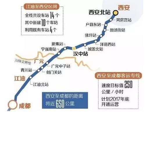 西成高速铁路全线共设22个车站,分别为:西安北站、阿房宫站、鄠邑站、佛坪站、洋县西站、城固北站、汉中站、宁强南站、朝天站、广元站、剑门关站、青川站、江油北站、江油站、青莲站、绵阳站、罗江东站、德阳站、广汉北站、青白江东站、新都东站和成都东站。一图明白读懂各站距西安几千米。