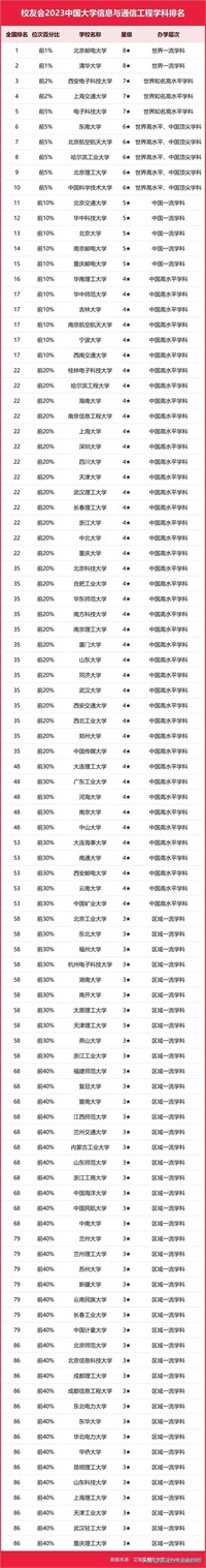 2023中国大学信息与通信工程学科排名出炉!北邮登顶!西电第三