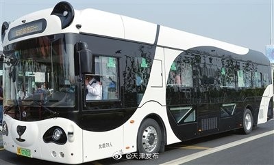 天津身边事【高颜值高科技 熊猫智能公交上路】黑白色的身子、长着一张“熊猫脸”,造型憨态可掬,这就是熊猫智能公交。昨天,在中新天津生态城召开的全球首批智能公交车营运发布会上,由深兰科技主导研发的天津首批熊猫智能公交正式交付生态城。3辆车长12米、宽2.55米的超大纯电动熊猫智能公交一亮相便“圈粉”,因为,它们不只外观呆萌可爱,还个个“身怀绝技”。