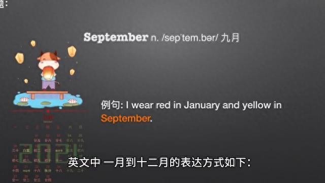 英文中一月到十二月的表达方式如下: