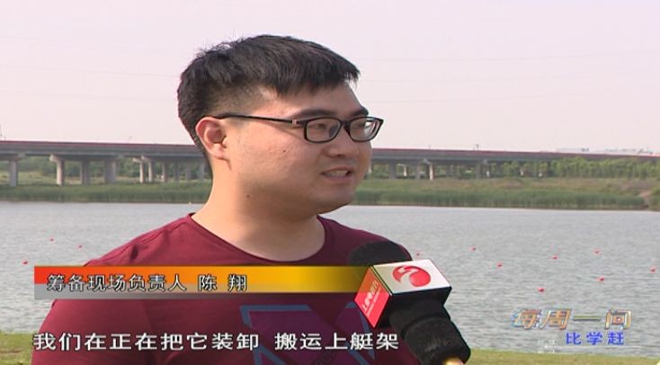 “观众朋友们,我现在是在曹娥江边,本周末,我身后的这片水域即将进行的是2018中国绍兴上虞世界赛艇挑战赛,据我们了解,本次赛事也是吸引了国内外18所知名高校的180名运动员参赛,届时将给市民呈现一场非同凡响的体育盛宴。”