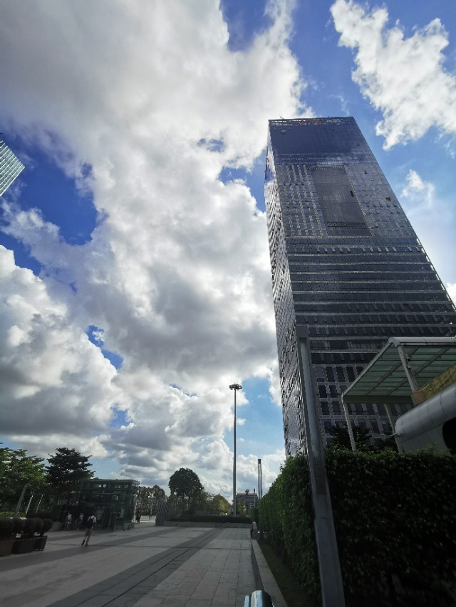 上面这栋摩天楼也不低,蓝天白云之下,甚是雄伟。