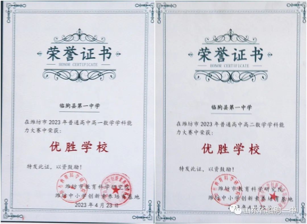 捷报催奋进,佳音鼓人心。近日,在2023年潍坊市普通高中学科能力大赛中,临朐一中学子发挥出色,勇创佳绩,学校获评潍坊市学科能力大赛优胜学校。