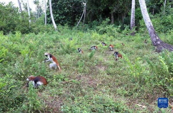 桑给巴尔红疣猴主要分布在坦桑尼亚桑给巴尔岛的森林保护区内,是非洲濒危物种。