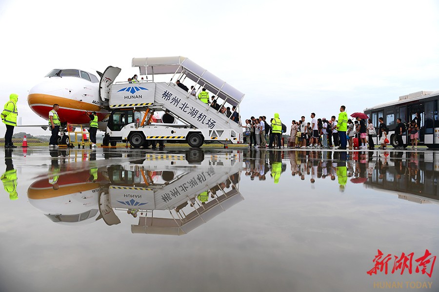 8月9日,机场工作人员组织旅客有序登机。今年,郴州机场建立科学服务管理体系,优化工作流程,提高服务质量和效能,不断加大一线生产岗位的消防、安全生产等检查频次,定期组织开展设施设备专项排故检查,确保岗位安全、消防安全、服务质量良好发展。自通航以来,郴州机场飞机起降6391架次,旅客吞吐量达46.34万人次。 曹高林 摄
