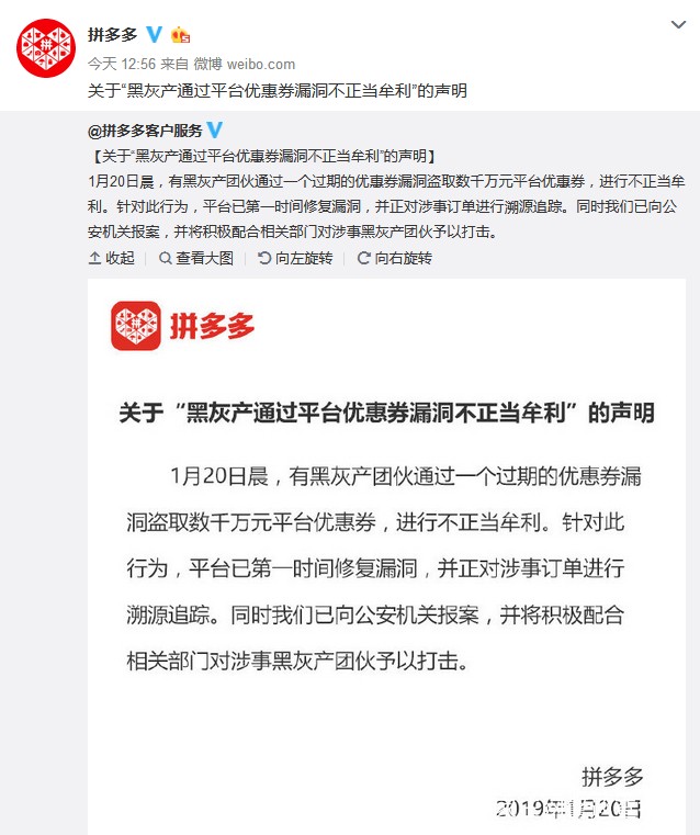 针对“此次BUG具体导致了公司损失多少,以及大家普遍比较关心的拼多多是否会要求羊毛党归还”等问题,拼多多公司回复称:“此次BUG的损失并不是市传的200亿,就像第一份声明所称,盗取数为千万元优惠券。