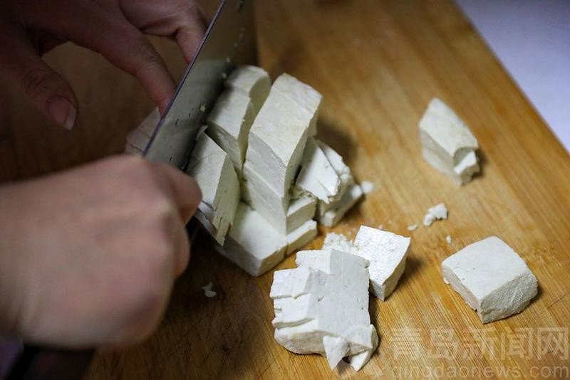 豆腐切块儿备用。