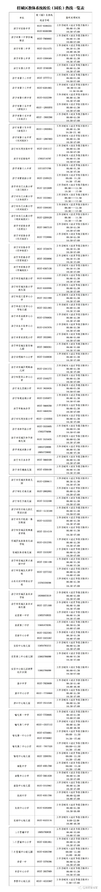 济宁市任城区教体局开通84处校(园)长热线