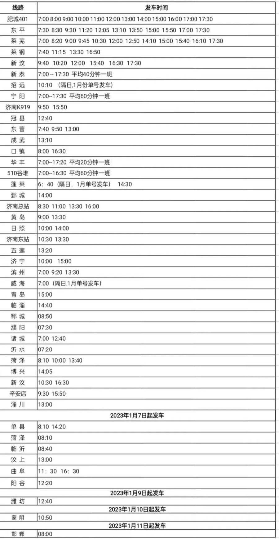 具体发车班次以当天为准,其他省际、市际班次将陆续恢复。鉴于疫情影响,班次变化频繁,请广大旅客朋友们关注“泰安交运伴你行”、“泰安出行”微信公众号或拨打客服电话0538—2188777查询班次信息,随时了解班次动态。