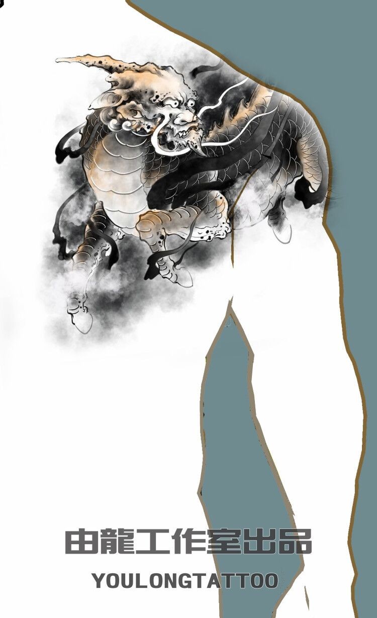 上海纹身由龙刺青设计,麒麟纹身手稿图案