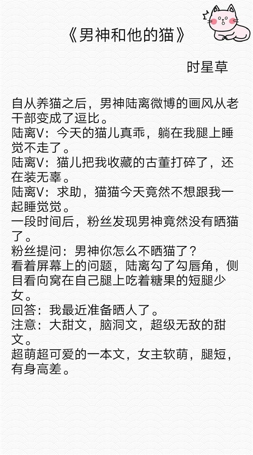 主角是猫猫的言情文盘点:《我的猫窝五百平》《男神和他的猫》