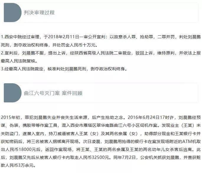 刚刚,西安曲江六号抢劫杀人案罪犯刘晨鹏被执行死刑
