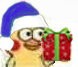 小黄鸡戴蓝色帽子拿圣诞礼物表情包图片