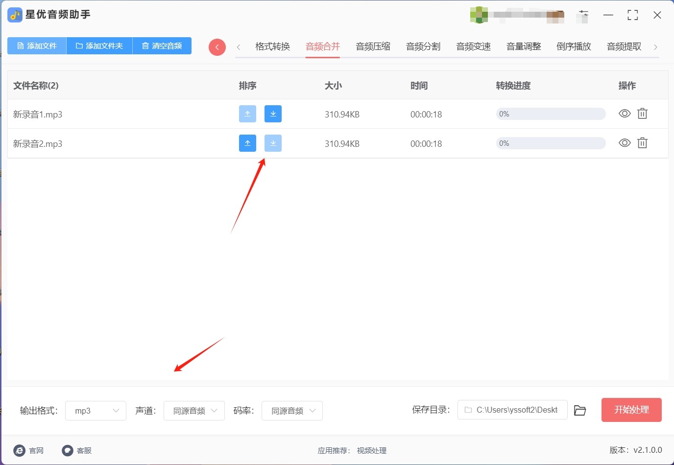 调整顺序:在文件信息列表中,通过点击文件右侧的上下箭头可以调整音频的播放顺序。