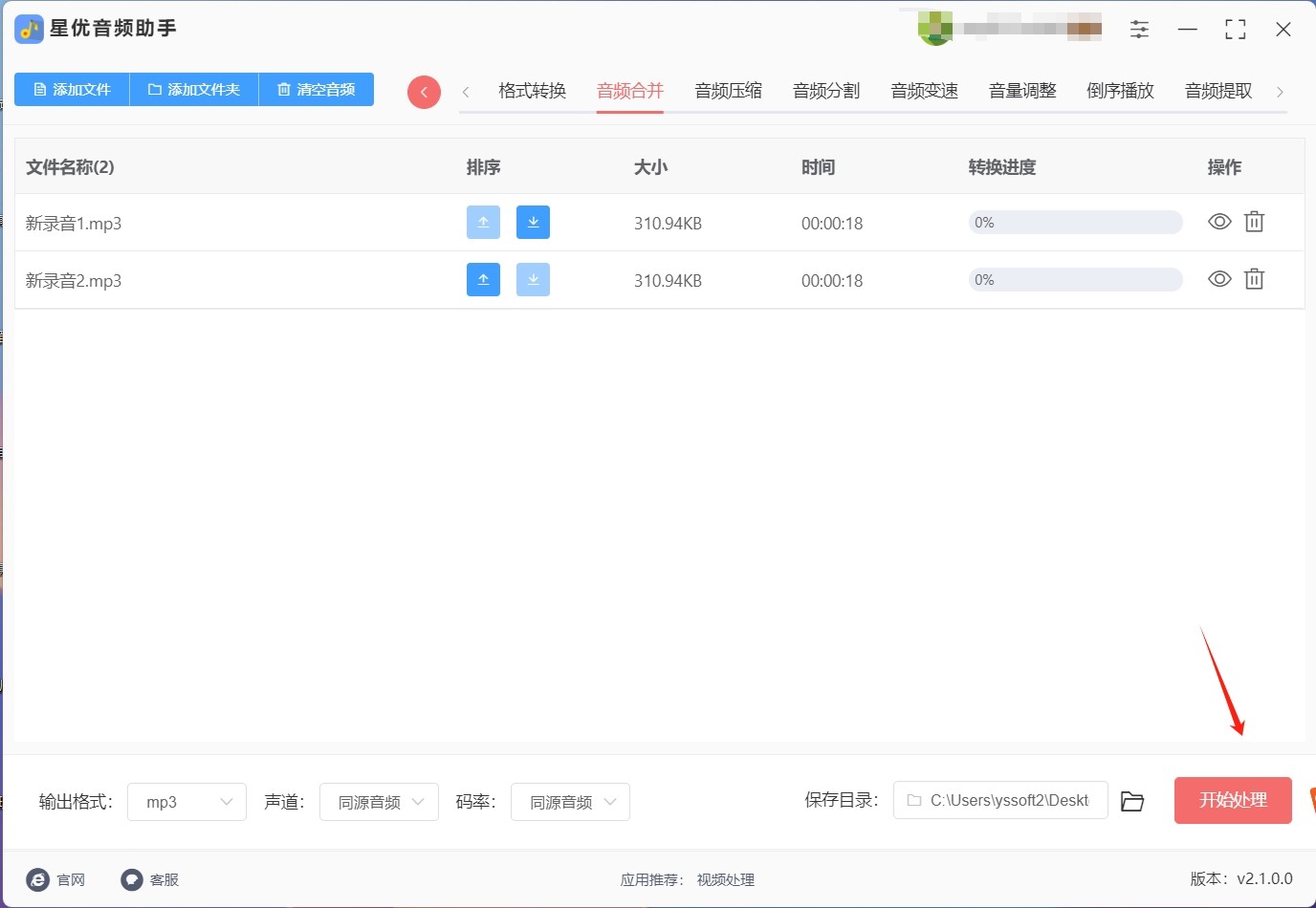 方法一:使用“星优音频助手”软件将两个mp3音频合成一个