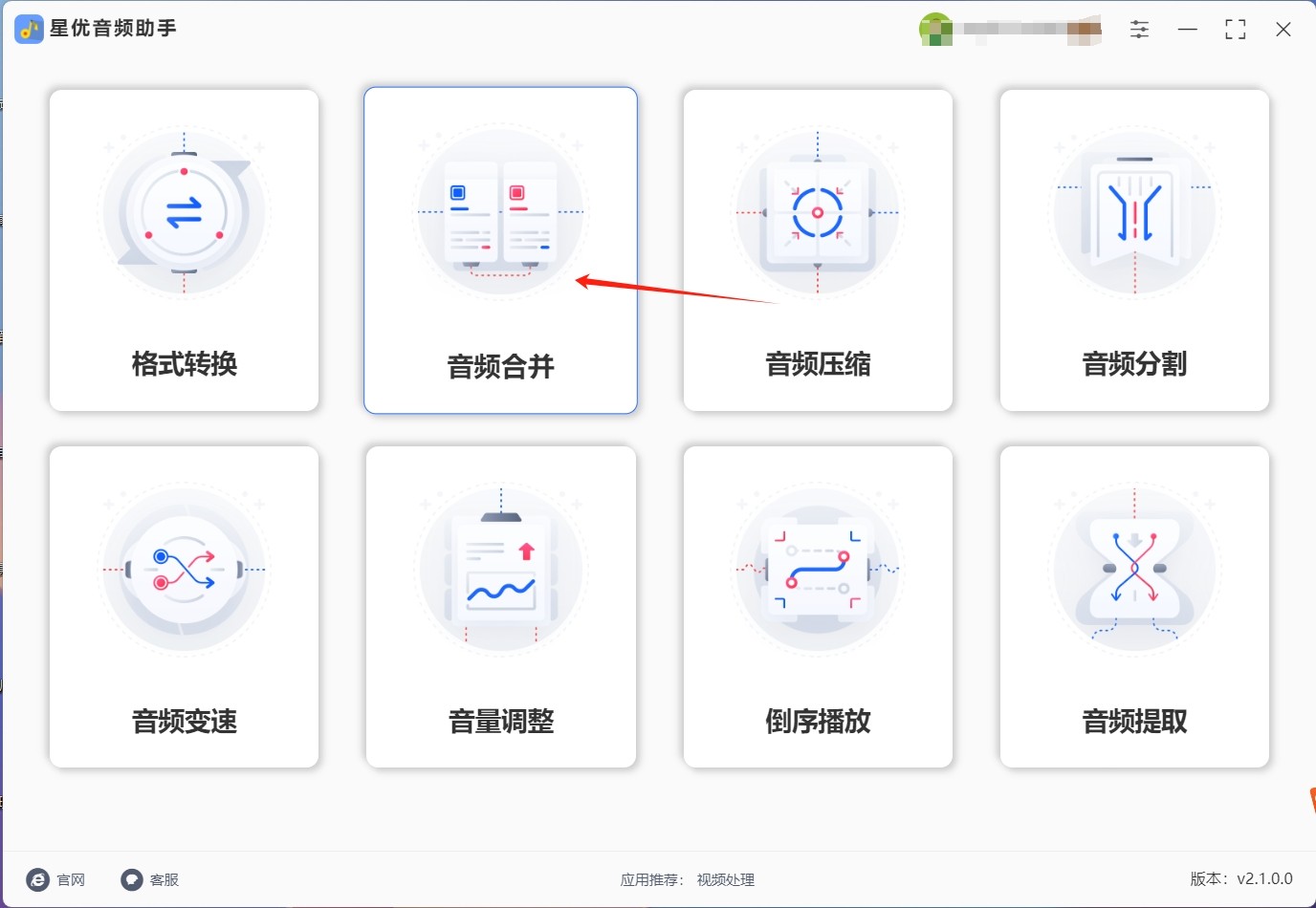 选择音频合并功能:打开软件后,选择界面左侧的“音频合并”功能。