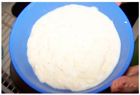 6.等土豆很牛奶充分融合后(煮的粘稠),放入鸡精、盐、黑胡椒粉。放鸡精(调味勺:3勺),盐(调味勺:多半勺),黑胡椒(2勺)