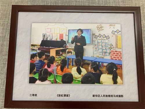 在8月26日举行的平顶山市政法系统“不忘初心牢记使命”书画摄影作品展中,新华区选送的作品获奖,其中新华区人民检察院韩建通的《威武之师》获得摄影类作品二等奖,新华区人民检察院马琰的《彩虹课堂》获得摄影类作品三等奖,光明路派出所毛振声的《不忘初心 牢记使命》获得书法类作品二等奖。