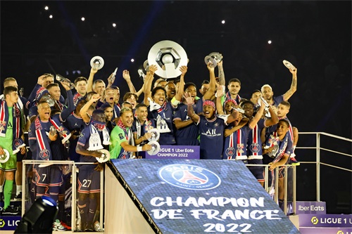 当日,2021-2022赛季法甲联赛迎来收官战,已经提前获得本赛季联赛冠军的巴黎圣日尔曼队主场以5比0战胜梅斯队。赛后,巴黎圣日耳曼队在颁奖典礼上举起联赛冠军奖杯。