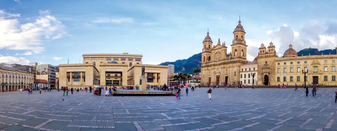玻利瓦尔广场左侧为哥伦比亚最高法院,右侧为距今约500年历史的波哥大主教座堂。