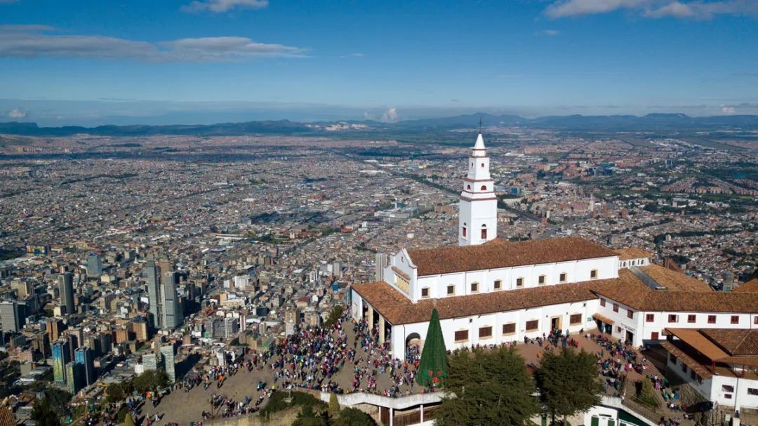 俯瞰波哥大。蒙塞拉特教堂位于蒙塞拉特山顶,始建于1657年,后毁于地震,1917年重建。