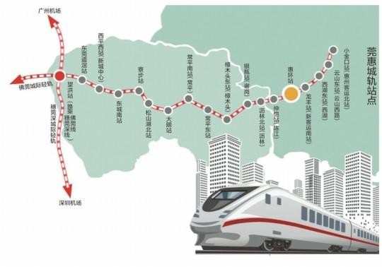 广惠城际铁路连接广州市、东莞市和惠州市,为珠三角城际快速轨道交通的放射线路之一,分为佛莞城际铁路和莞惠城际铁路两段建设。