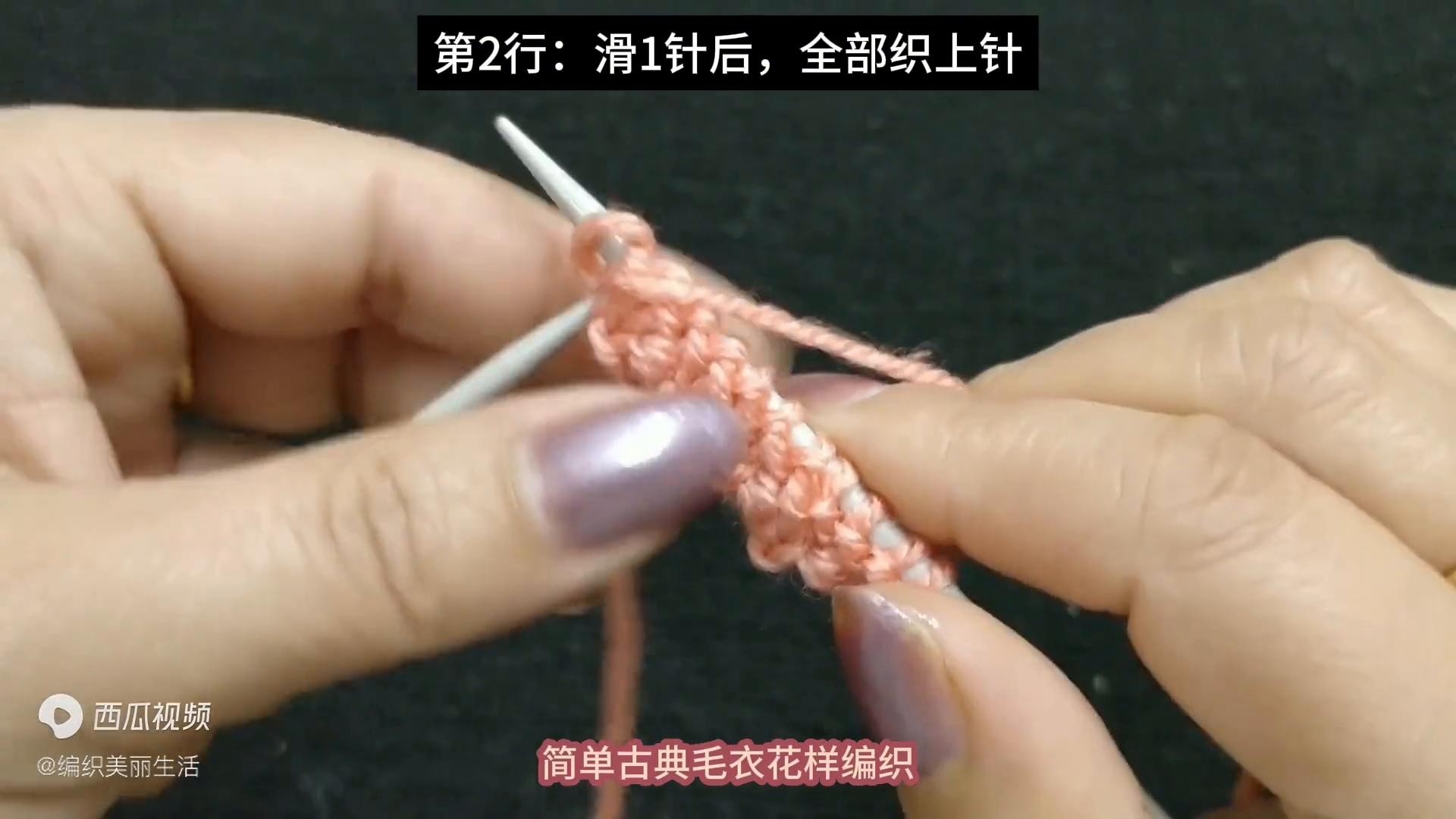 2. 第 1 行(正面):滑 1,1 上,编织重复部分“1 特下,1 上”1 下。