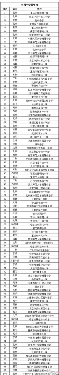 全国小学100强排名出炉,今天小编就带大家来看一看,排名情况: