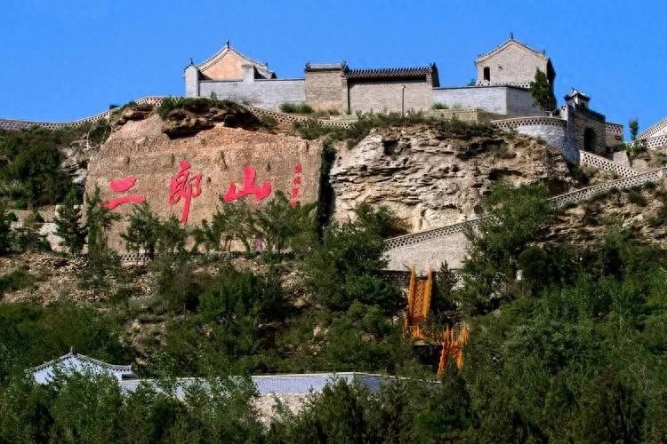 二郎山位于陕西省神木城西五百米的窟野河与芹河交汇处,因山上有二郎庙而得名。另相传明朝时,二郎山每逢山洪暴发,其边上的窟野河水便会冲垮大量的农田,当地百姓便在此山上塑起二郎神像,祈求神灵的庇佑保护,因此而得名。