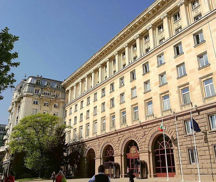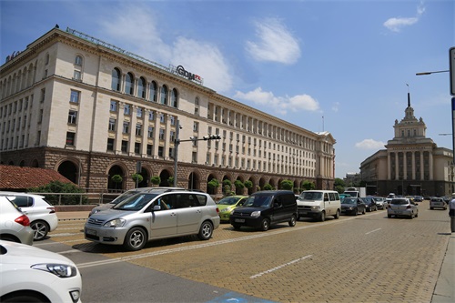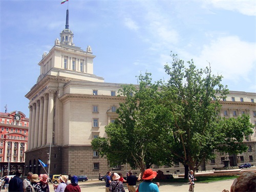 市中心议会大厦前的广场上,雄伟的议会大厦,原为保加利亚共产党总部大楼。议会大厦右边是总统府,门口有警卫站岗,每天的整点有换岗仪式。左边是总理府。保加利亚文字与俄文读音有不少相同之处,这给我们读过俄文的人,提供了不少方便。