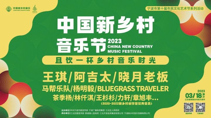好消息来了!作为宁波市第十届市民文化艺术节重磅活动之一,3月18日,2023中国新乡村音乐节在宁波慈城激情上演,届时,知名音乐人王琪、晓月老板,知名乐队阿吉太和马帮乐队,以及外籍乐队BluegrassTraveler,带着各自的成名曲激情开唱。